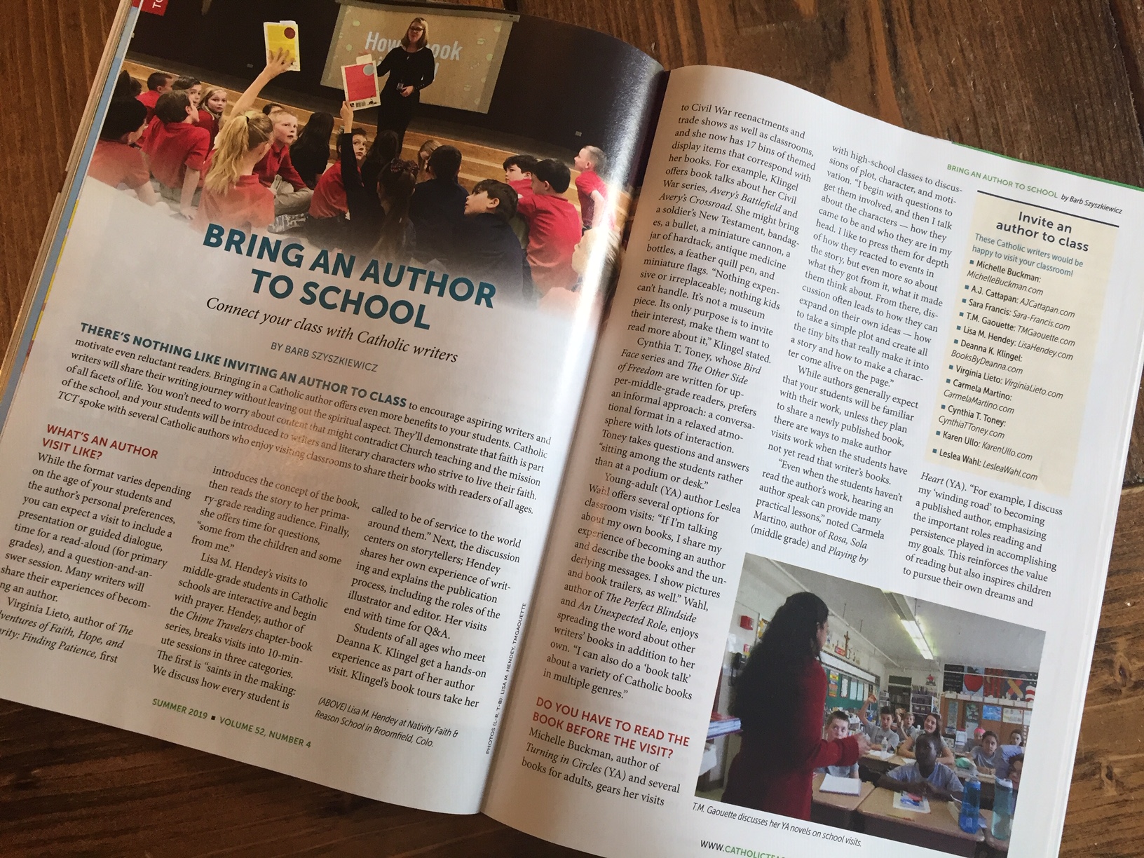 T. M Gaouette featured in Summer 2019 Today’s Catholic Teacher article “Bring an Author to School.”